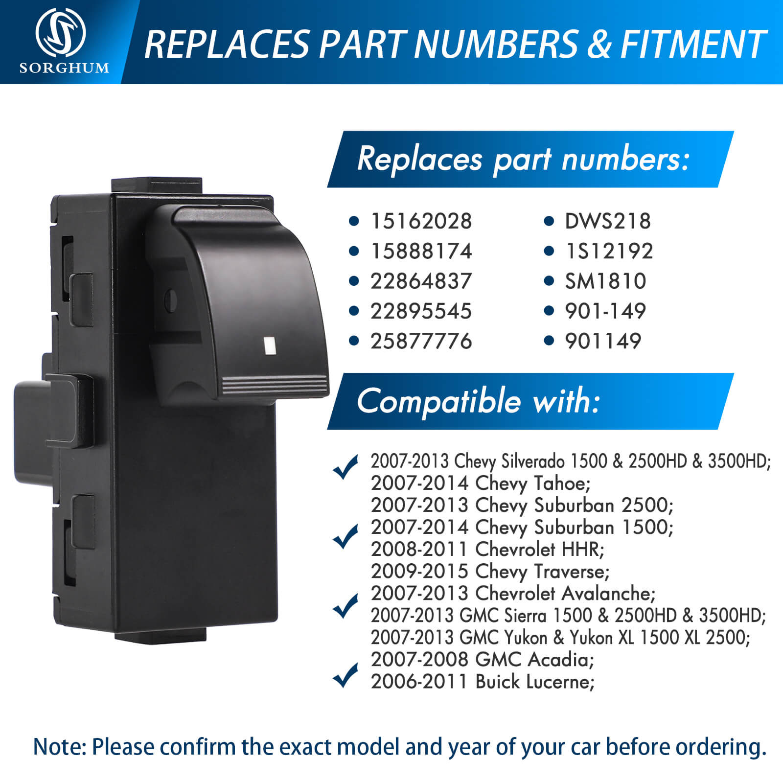 Sorghum 22895545 Passenger Side Master Power Window Control Switch For GMC Chevy Silverado Cadillac