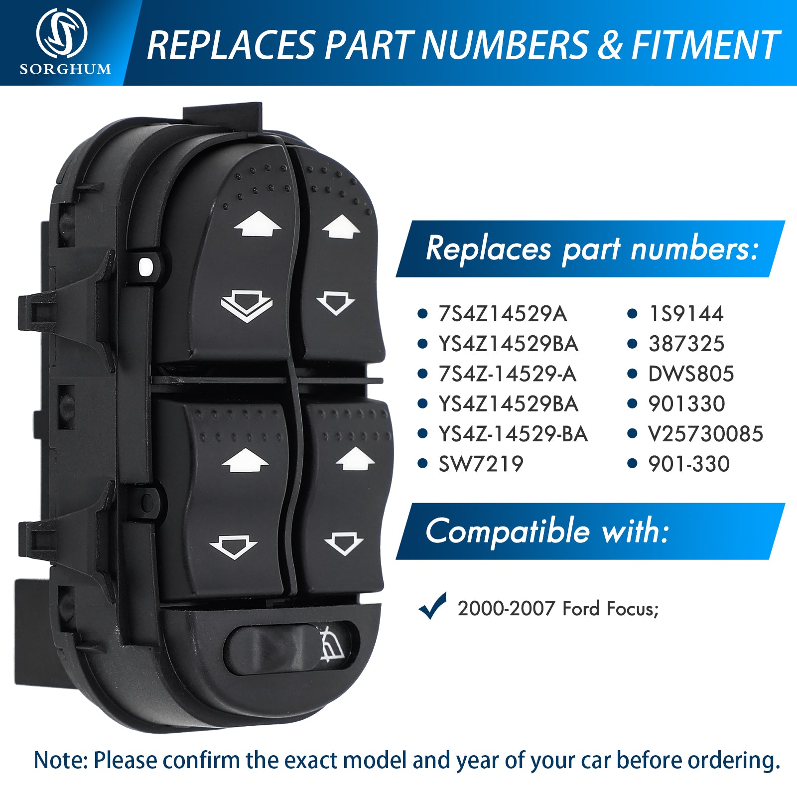 Sorghum 7S4Z14529A Master Power Window Switch Fit for 2000 2001 2002 2003 2004 2005 2006 2007 Ford Focus
