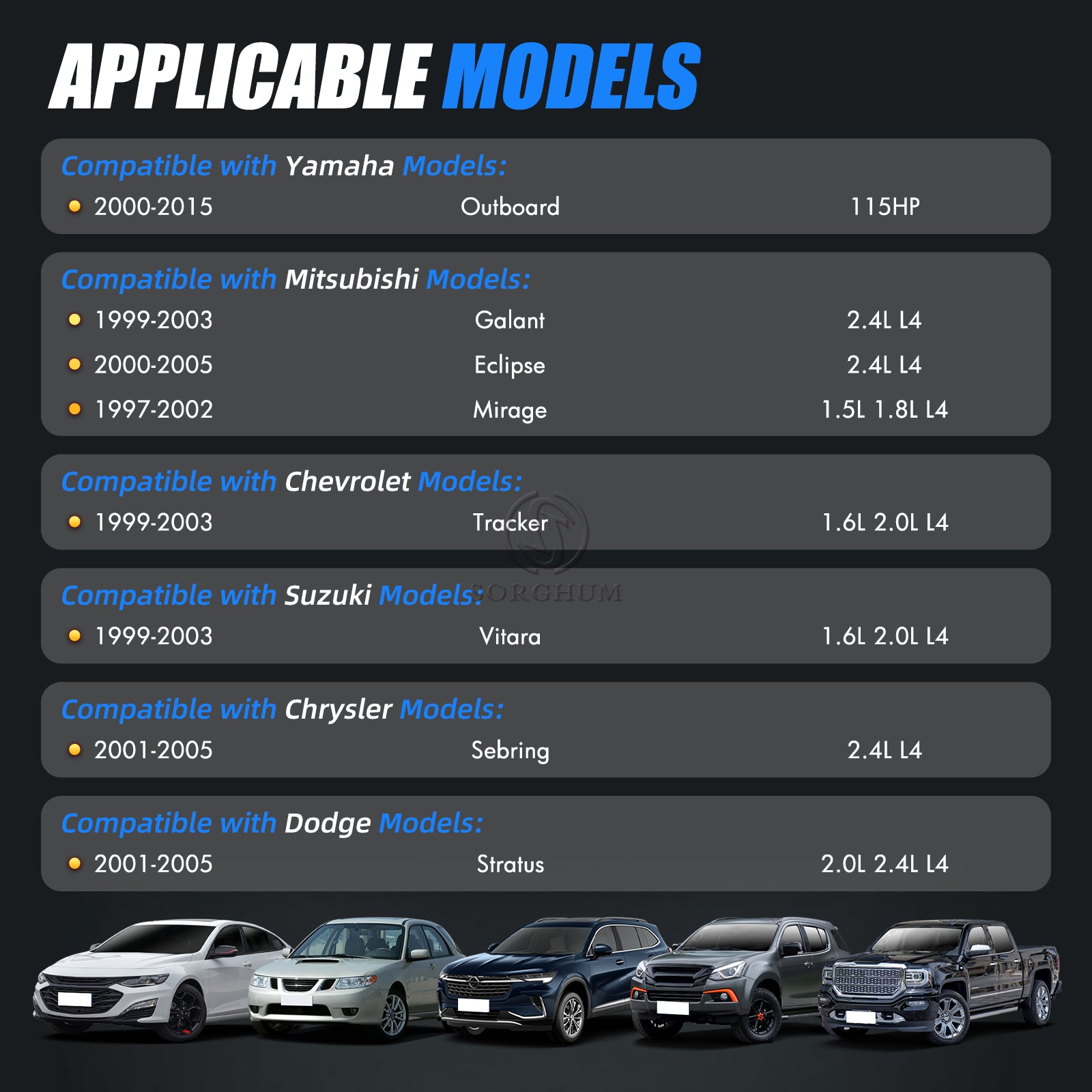 Sorghum CDH210 Fuel Injectors Set of 4 Fit for Yamaha Outboard 115HP 2000-2015 Mitsubishi Galant Eclipse Mirage Chevrolet Tracker Chrysler Sebring Dodge Stratus